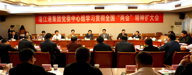 2012年3月23日下午,集团公司召开党委中心组学习扩大会,董事长、党委书记张翼主持会议。党委副书记杨文传达全国“两会”精神及全市机关作风整治年活动动员大会的精神,部署集团作风建设工作,刘恩怀总裁结合港口发展战略部署、提升港口服务质量和效益等方面进行了中心发言。