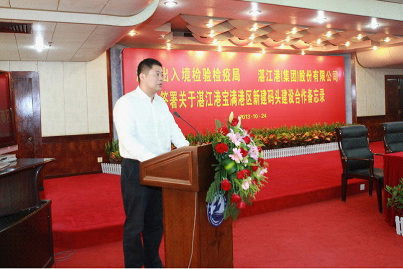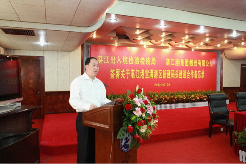 湛江市口岸局副局长郭荣波主持会议,湛江市委常委陈岸明出席并致辞。湛江检验检疫局副局长麦伟强(主持工作)、湛江港集团副总裁林聪代表双方在《备忘录》上签字。湛江检验检疫局副局长张文、湛江港集团总裁刘恩怀等见证了签约。