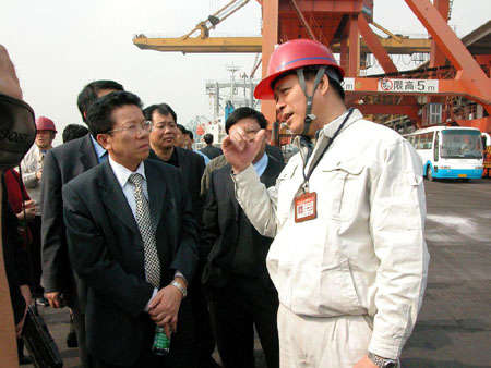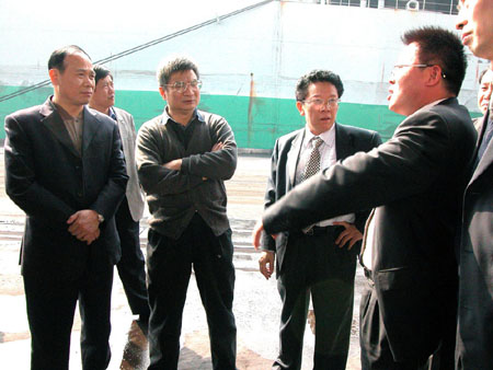 郑日强总裁细心听取广州港新港公司领导介绍