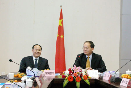 湛江市委副书记、集团董事长梁建伟(左)与