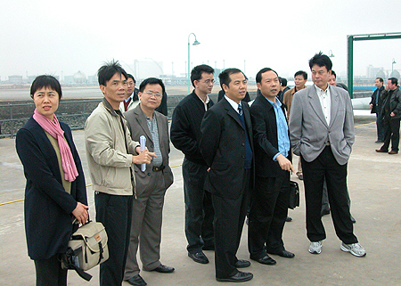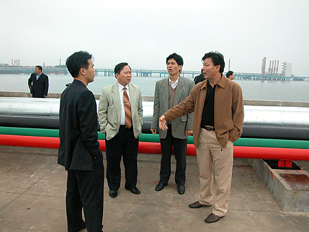 省经贸委张文献处长(右三)等有关代表到205#码头对项目竣工实物进行了现场勘察