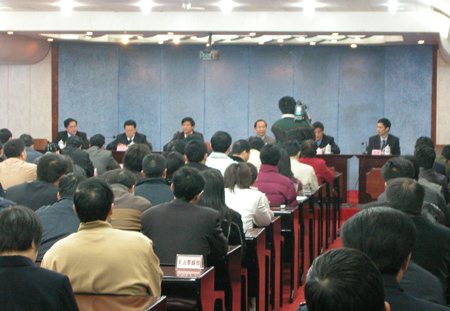郑日强董事长和张翼总裁分别在会上作了讲话,表示新一届领导班子将根据市委市政府的要求和企业发展的需要,开拓进取,扎实开展各项工作,推动港口的跨越式发展和可持续性发展。一是全力以赴抓好港口发展建设,带领全港员工做好重点工程建设和技改项目实施工作。二是加大招商引资力度,积极引进临港工业基地投资主体,争取工业基地开发有新突破。三是全力抓生产经营,努力完成今年各项经营指标任务。四是加强现场管理,改善装卸工艺,提高港口管理水平和装卸效率,为广大客户提供一流服务;加大安全管理力度,确保安全生产平稳。五是廉洁自律,抓好党风廉政建设,做到“八个坚持”、“十要十不要”、牢记“两个务必”,绝不违反湛江市的国企领导干部“十条禁令”。六是加强思想政治工作,开展好先进性教育活动,增强党组织的凝聚力,充分发挥共产党员在企业改革的模范带头作用,并坚持以人为本,努力解决员工关心的热点和难点问题。