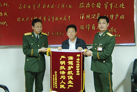 郑日强董事长(图中)代表集团公司给湛江边防检查站送上锦旗