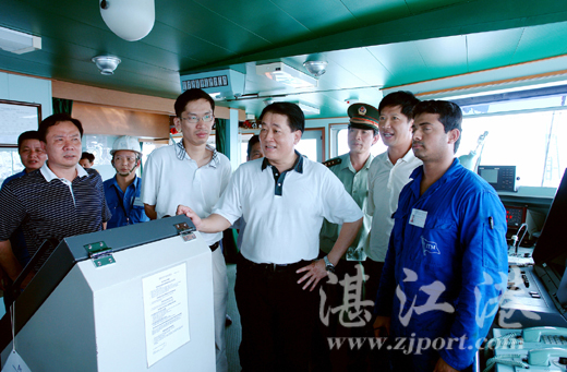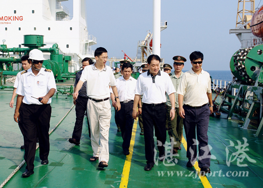 湛江市委、市政府十分关心湛江港集团公司的建设与发展。2006年7月24日上午,湛江市常务副市长阮日生、副市长赵志辉率领湛江海关、湛江出入境检验检疫局、湛江海事局、湛江边防检查站、湛江港务管理局、湛江港集团有限公司等单位领导到东海岛东面的龙腾航道候泊锚地,视察正在大型油轮“奥泊利亚”轮的过驳作业现场并慰问了现场作业人员。