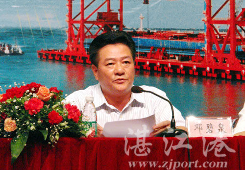湛江市委常委、宣传部长邓碧泉充分肯定了湛江港集团在企业文化建设方面取得的成绩,他说,湛江港开港50年,全体员工为港口的发展付出了辛勤的汗水和心血,不但创造了丰富的物质财富,也创造了十分宝贵的精神财富,培育了特色鲜明的企业文化。他强调,湛江港集团适时启动企业文化建设工程,将文化成果推广深植,以文化力提高竞争力,增强企业的发展后劲,先进的企业文化必将使湛江港集团不断提高管理水平,实现“跨越式”发展目标,早日建成中国南方大港。